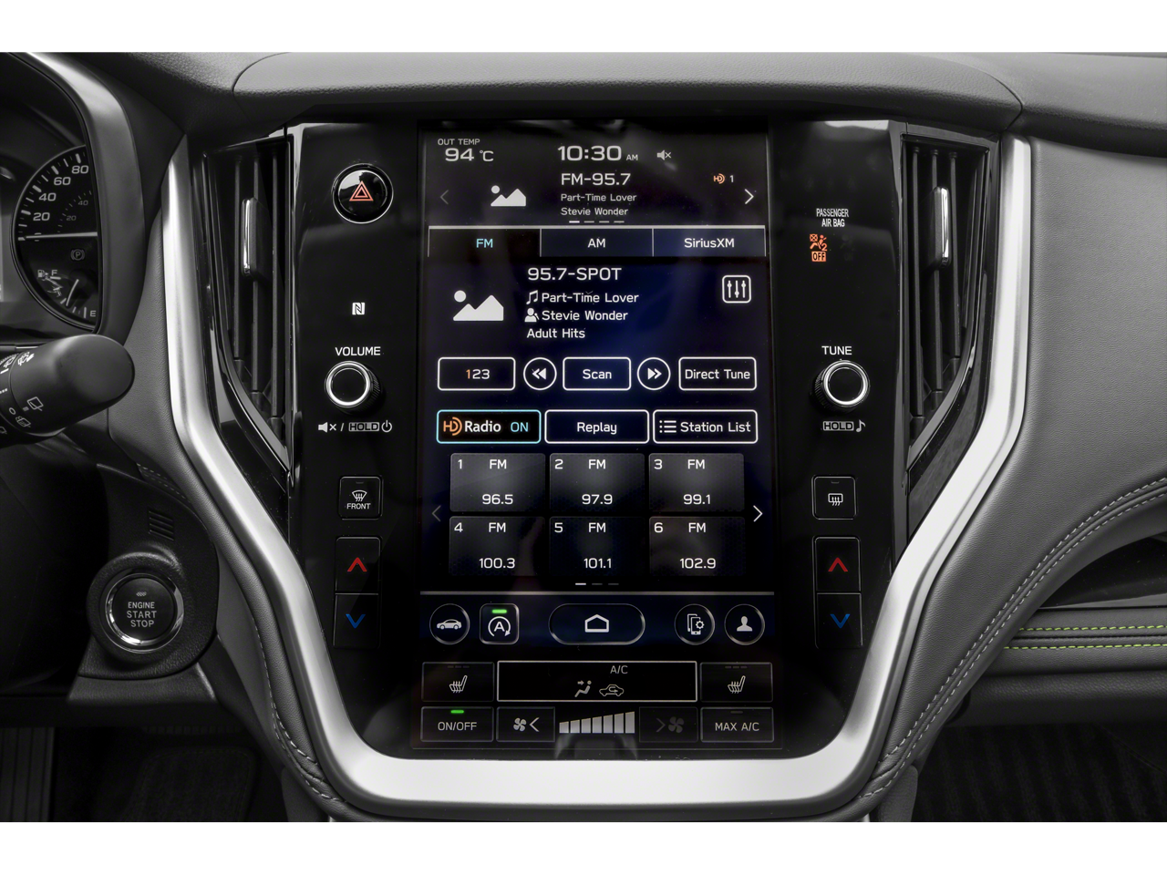 - Radio: Subaru 11.6" Multimedia Plus System -inc: AM/FM stereo, HD Radio, valet mode, multi-touch gesture high resolution display screen, voice activated controls, Bluetooth® audio streaming and hands-free phone connectivity w/SMS text messaging (refer to subaru.com for cell phone compatibility), Near Field Communication (NFC), iPod control capability, SiriusXM w/360L (4 months free trial/subscription required after), SiriusXM Travel Link (3 years free trial/subscription required after), smartphone integration for Android Auto and Apple CarPlay w/full screen view and wireless connection, USB and Over The Air (OTA) audio system update, audio system and Bluetooth® steering wheel control switches, 576 watt harman/kardon surround sound system w/12 speakers, illuminated 3.5mm auxiliary input jack and illuminated USB-A and USB-C input/charge ports
